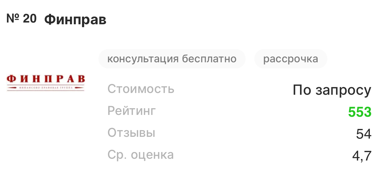 Лучшие юристы по банкротству физических лиц «Независимый общероссийский рейтинг»