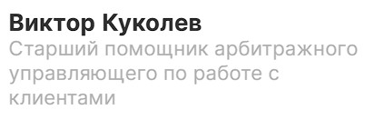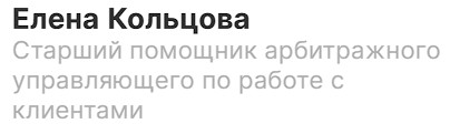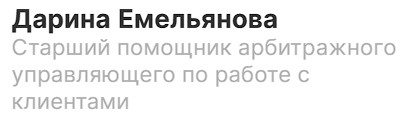 Вот и подошла к концу моя процедура банкротства. Хочу выразить благодарность Кольцовой Елене, которая в самом начале помогала мне в сборе документации. Очень чуткая, внимательная и добросовестная женщина. Марии Кулешиной огромное спасибо за успешное окончание процедуры. НО… Из всей процедуры могу и хочу выделить самого лучшего Юриста с которым мне пришлось идти рука об руку на протяжении года. Горюшин Вадим🙏🏻❤️ Огромная тебе благодарность за то, что ты сопровождал меня в каждом этапе и отвечал на все мои вопросы. Успокаивал и поддерживал меня💪🏻 Вадим, очень грамотный, отзывчивый и просто профессионал своего дела. Огромное спасибо вам всем❤️